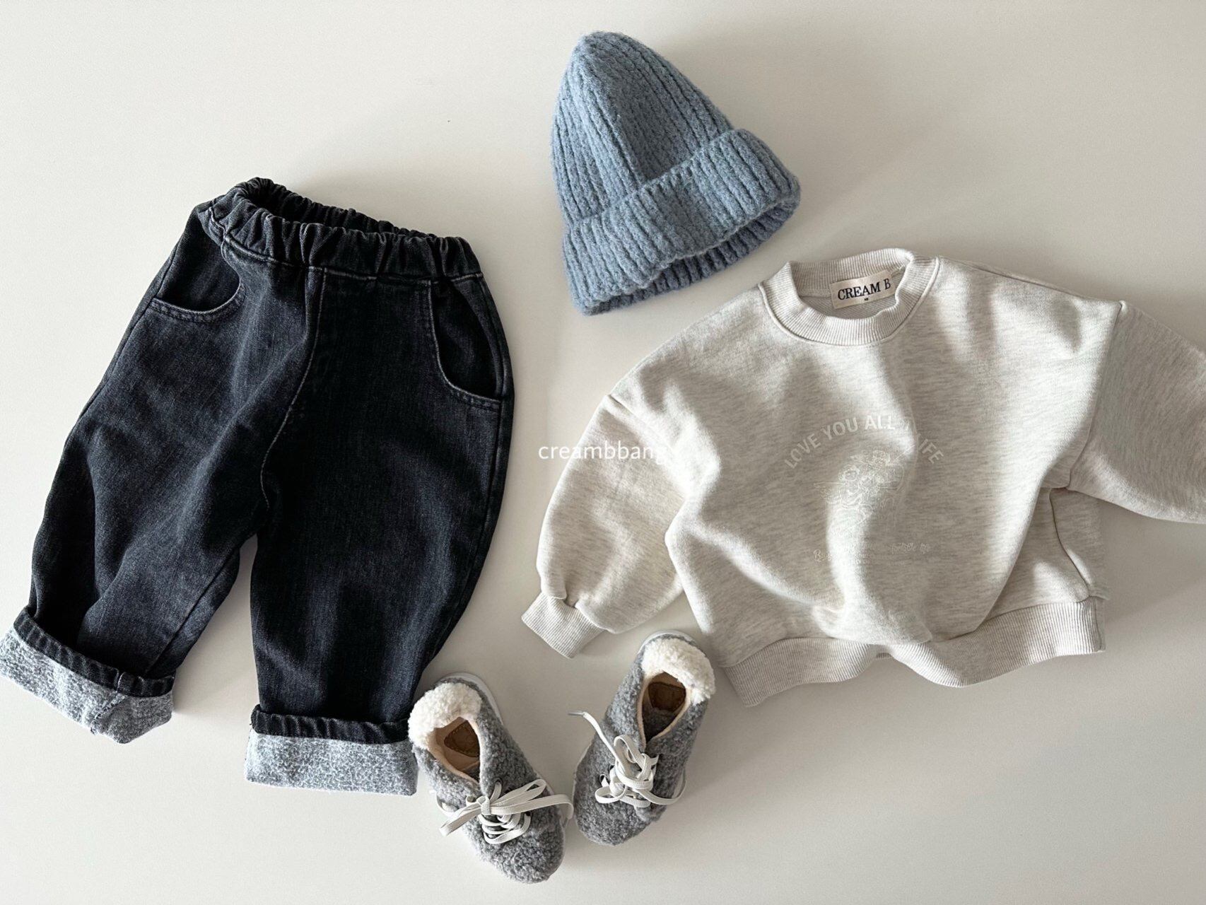 cream-bbang brushed denim pants