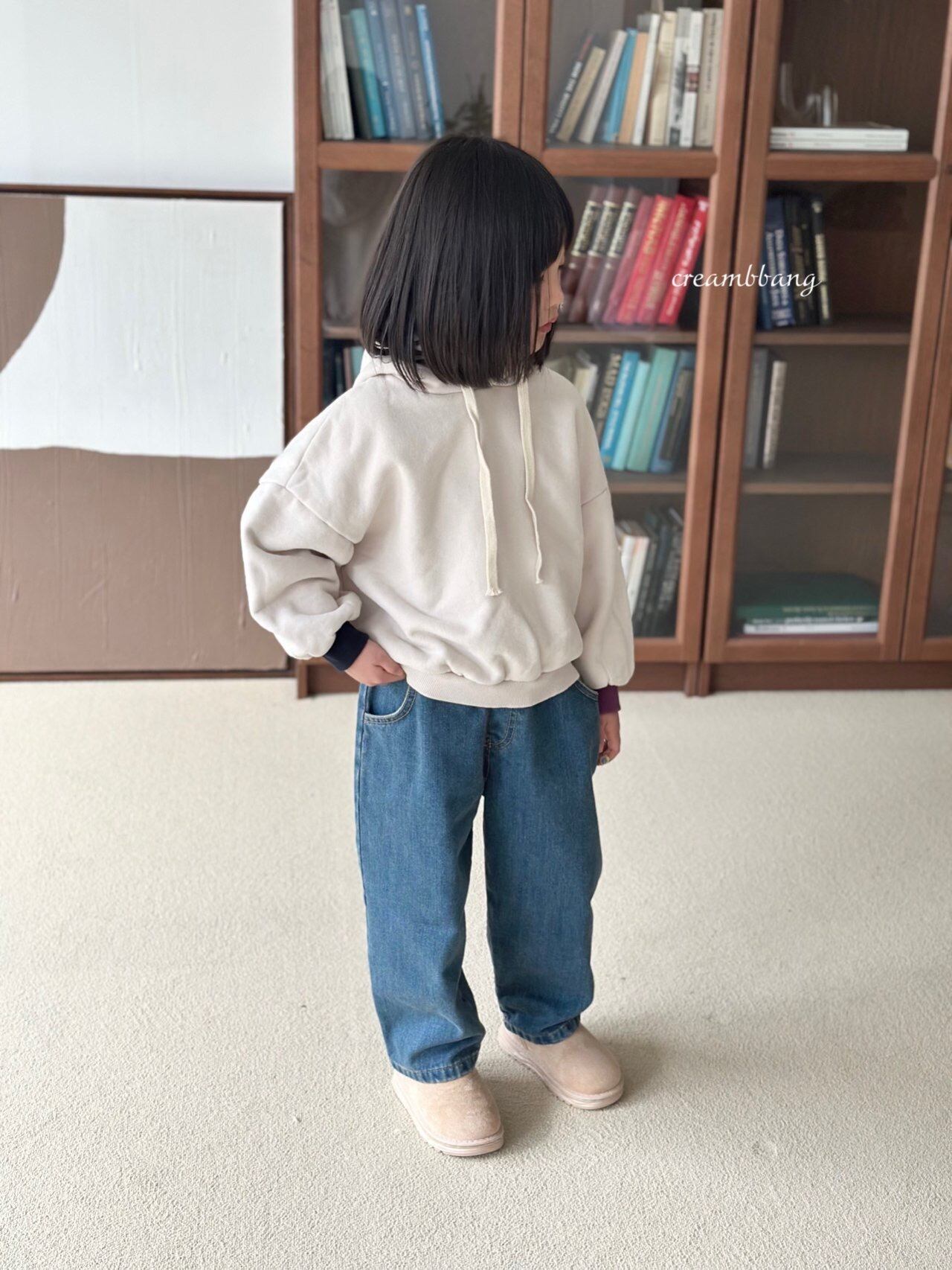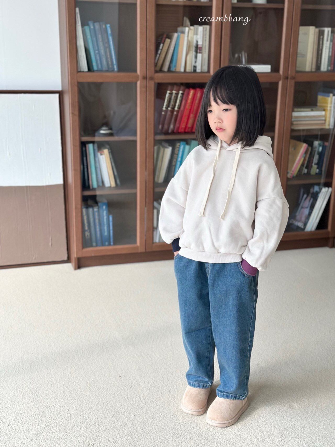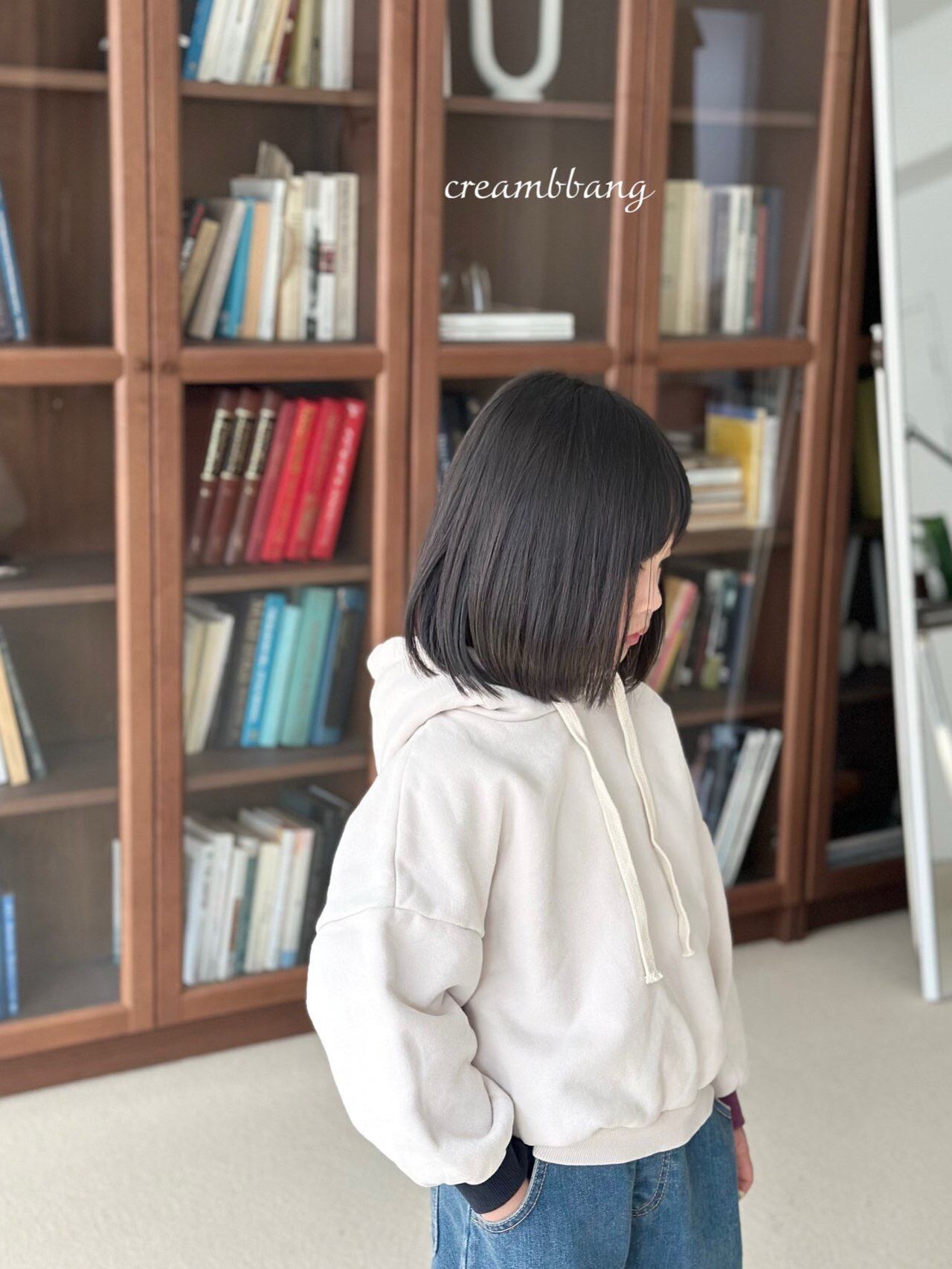 cream-bbang contrast sleeve brushed hoodie