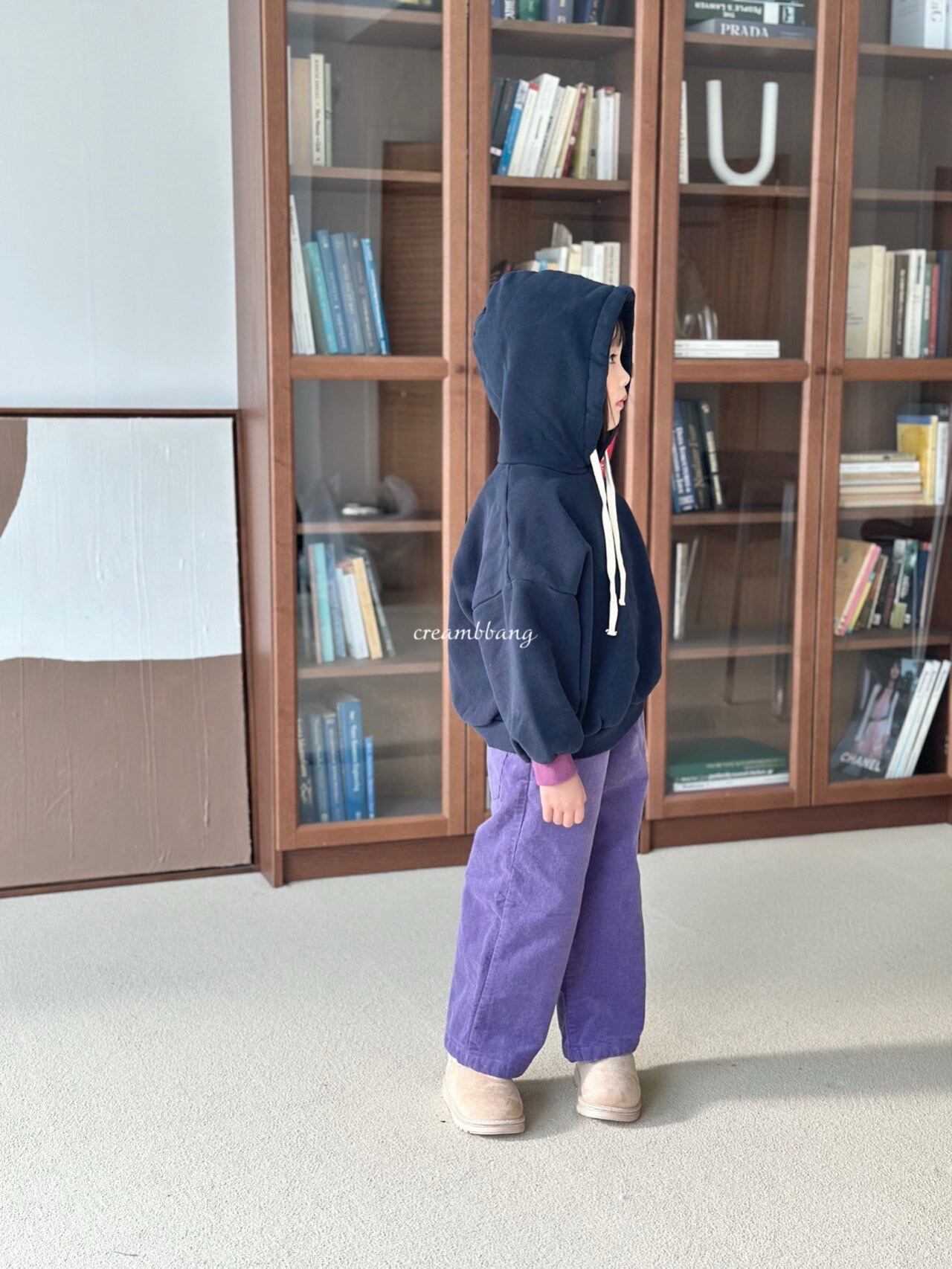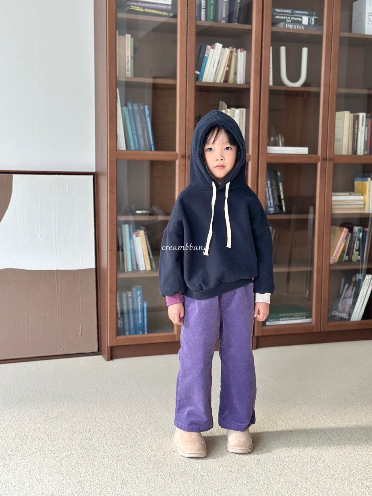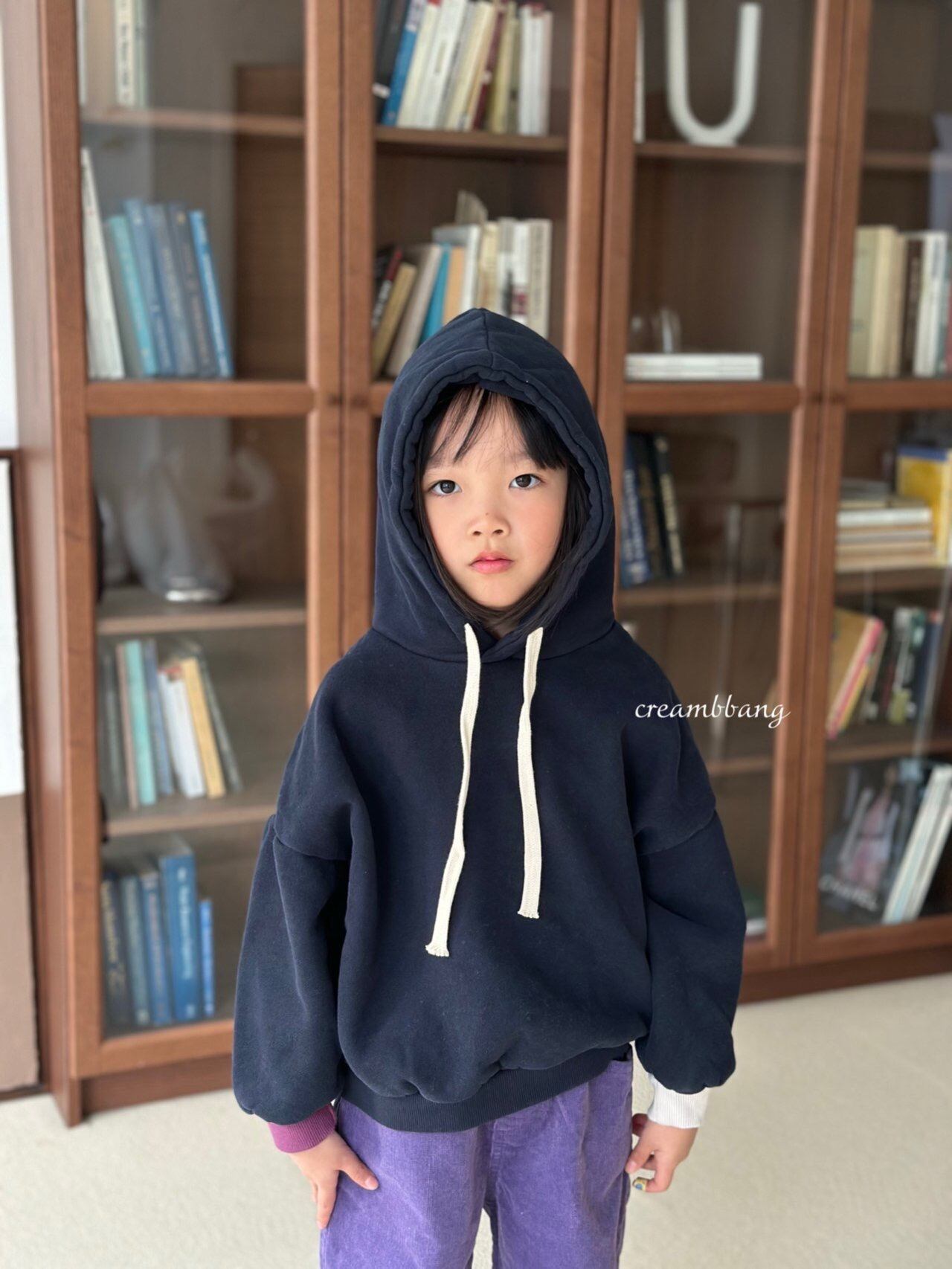 cream-bbang contrast sleeve brushed hoodie