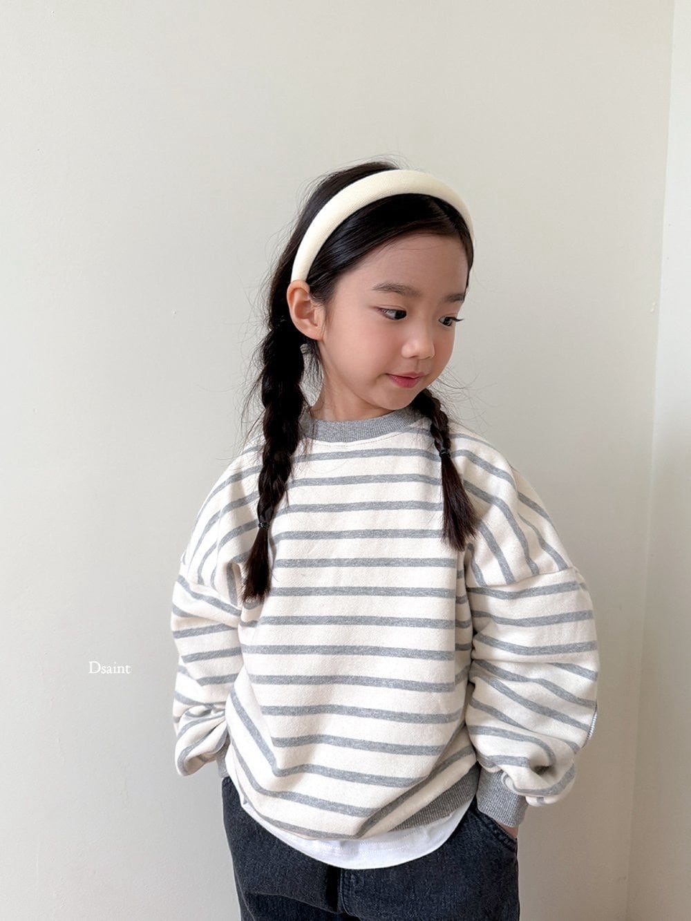 Dsaint puff stripe brushed sweatshirt