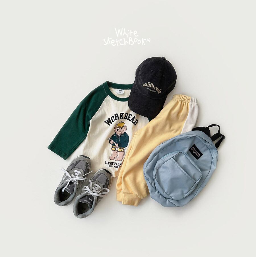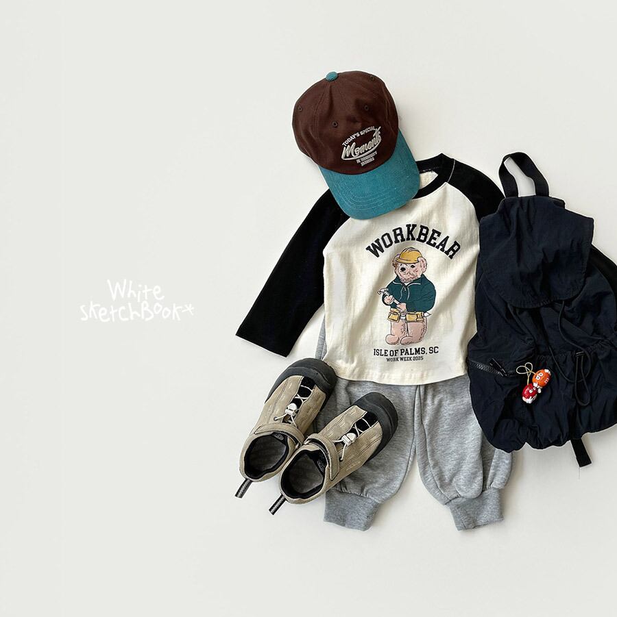 White sketch book work bear t-shirt