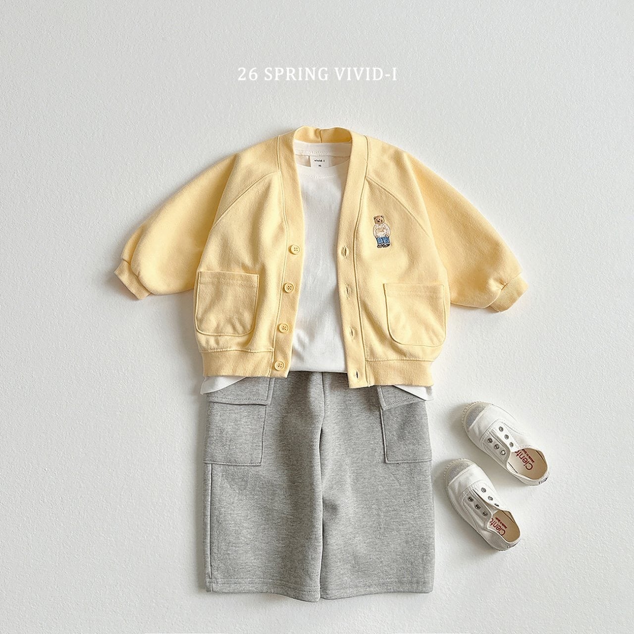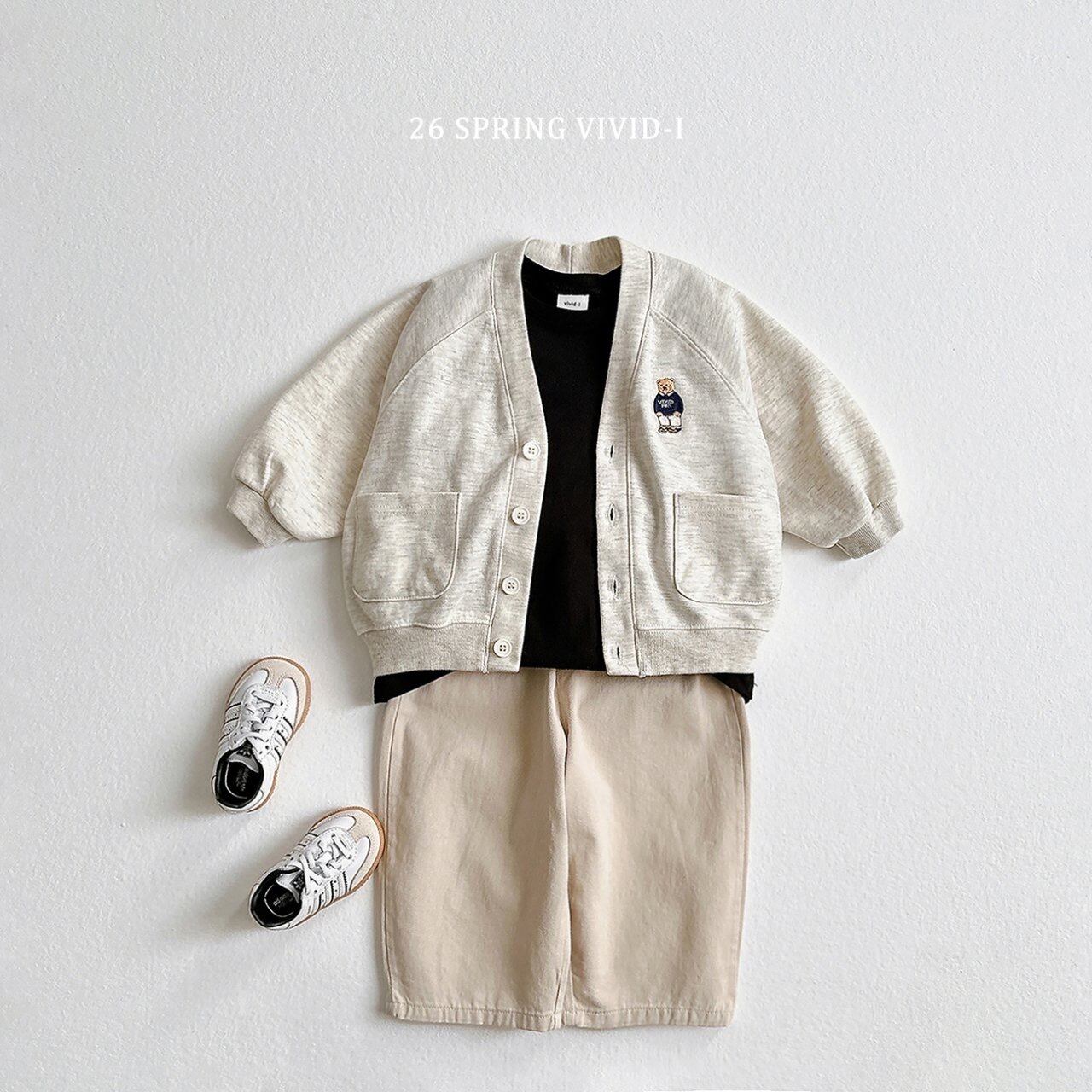 vivid.i bear embroidery pocket cardigan