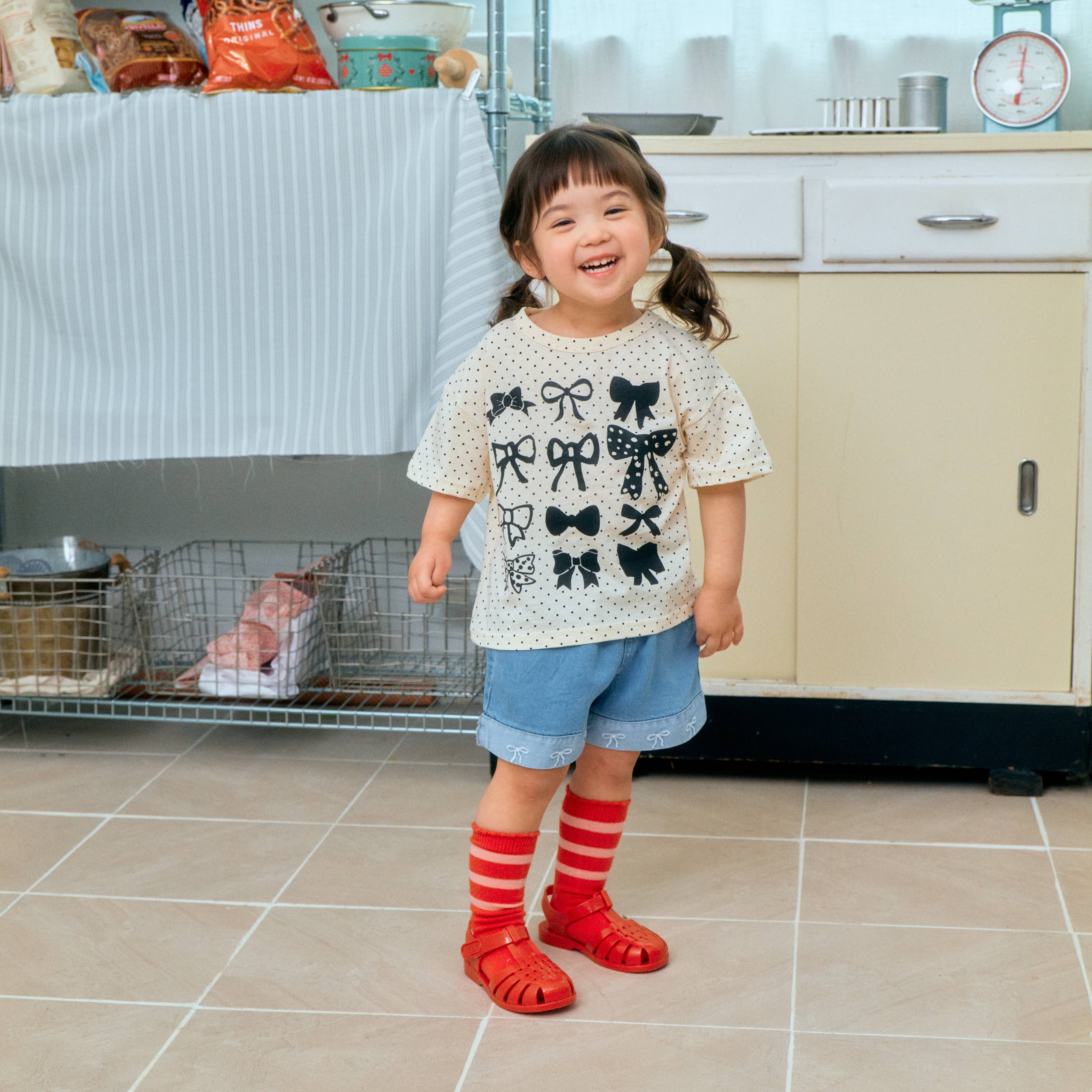 1st blue ribbon print short sleeve t-shirt