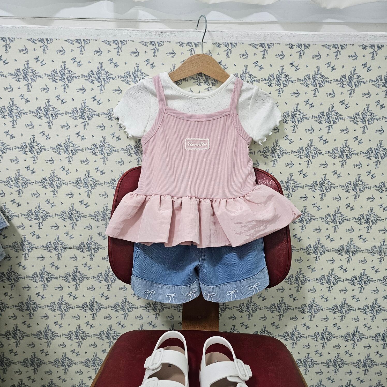 1st blue ribbon embroidery denim shorts